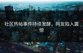 近期,一篇在各大社区平台广泛传播的热帖引起了网友们的广泛关注,随着事件的逐步发酵,更多的真相逐渐浮出...