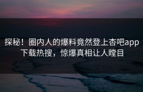探秘!圈内人的爆料竟然登上杏吧app下载热搜,惊爆真相让人瞠目