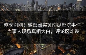 昨晚,微密圈一则爆料引爆了整个网络——“南瓜影院事件”引发了大规模的讨论,许多网友在各大社交平台纷纷...