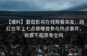【爆料】蘑菇影视在线观看突发:网红在早上七点被曝曾参与热点事件,欲罢不能席卷全网 导语 最近...