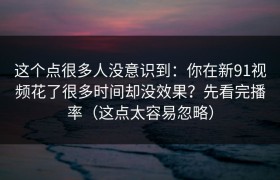 这个点很多人没意识到:你在新91视频花了很多时间却没效果?先看完播率(这点太容易忽略) 很多创作者把...