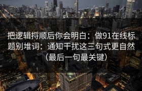 想省时间就看这条:把91官网当工具用:避坑清单做好,体验直接翻倍(真的不夸张) 一句话结论:把91官...