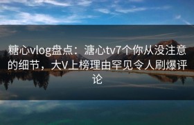 糖心vlog盘点:溏心tv7个你从没注意的细节,大V上榜理由罕见令人刷爆评论