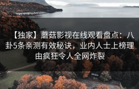 【独家】蘑菇影视在线观看盘点:八卦5条亲测有效秘诀,业内人士上榜理由疯狂令人全网炸裂