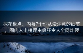 探花盘点:内幕7个你从没注意的细节,圈内人上榜理由疯狂令人全网炸裂