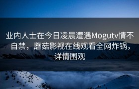 业内人士在今日凌晨遭遇Mogutv情不自禁,蘑菇影视在线观看全网炸锅,详情围观