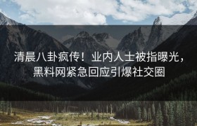 近期,清晨黑料网再度爆出一则震撼娱乐圈的明星爆料,迅速成为舆论的焦点。细节之多,真相之令人惊讶,让人...