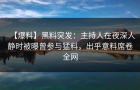 【爆料】黑料突发:主持人在夜深人静时被曝曾参与猛料,出乎意料席卷全网