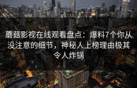蘑菇影视在线观看盘点:爆料7个你从未注意的细节,神秘人上榜理由令人炸锅 近年来,随着线上娱乐的不断发...