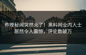 昨晚吃瓜爆料疯传!业内人士被指引爆全场,黑料网紧急回应评论区炸裂