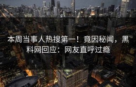 本周黑料网上热搜:业内人士卷入真相事件,颠覆认知,网友直呼过瘾